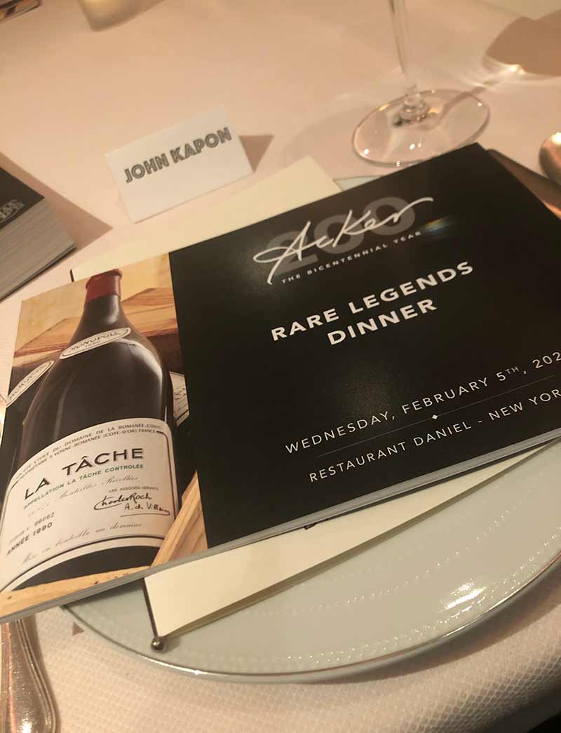 What a difference one month can make. In early February, Acker was celebrating its 200th anniversary in full frontal fashion. Dinners, auction, gala. It was a great week, and now a reminder of good times rolling, good times that will be back again soon. There were three extraordinary dinners that week, and the Rare Legends dinner at Daniel was most certainly one of them.
